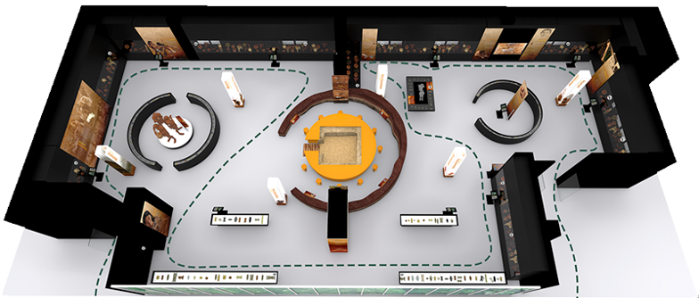En esta sala los objetos de cerámica, piedra y jade están dispuestos en un conjunto de vitrinas y gaveteros, de acuerdo con las tres diferentes regiones arqueológicas de Costa Rica de las cuales proceden. Las piezas forman parte de la colección en movimiento, dado que constituyen el material de apoyo para la investigación científica y futuras exposiciones temporales e itinerantes, tanto dentro como fuera del país.